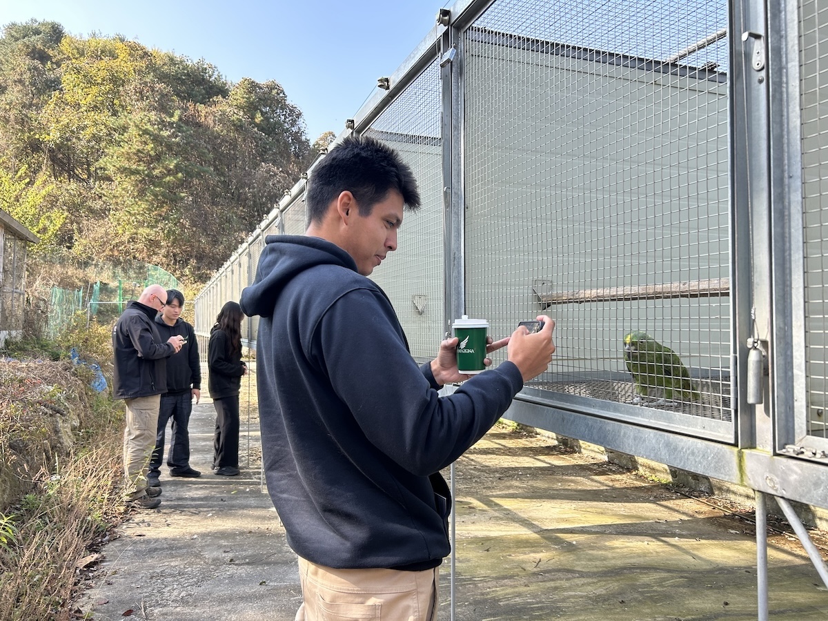 Early the next morning, we traveled to Gapyeong to visit Amazona and Begonia Bird Park. For Andrey, visiting a bird café like Amazona was a first, and seeing people interact closely with birds in a large aviary left a strong impression. After a traditional Korean dinner, we accompanied him to the bus terminal. The following day, he continued his journey to Malaysia for another bird-related visit.