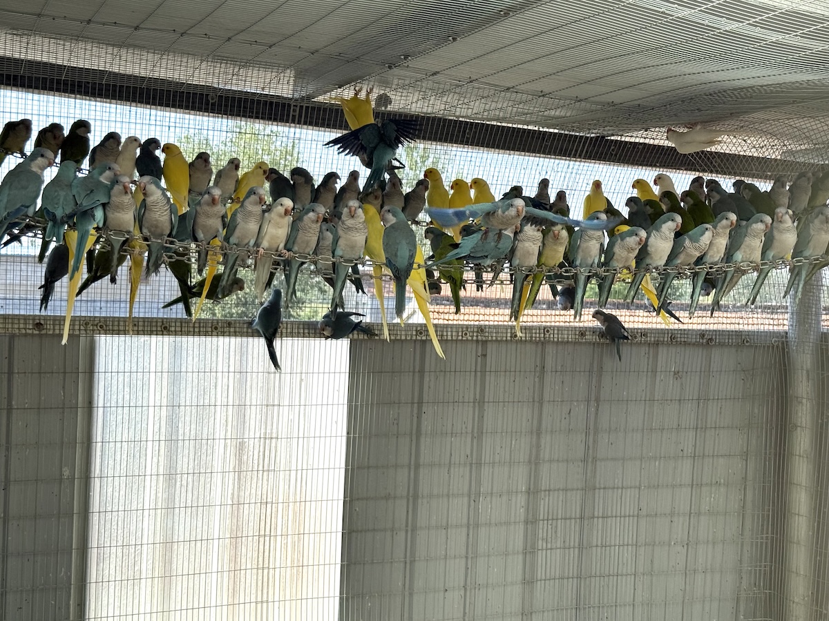 The number of bird species is limited and depends on the district or province. The most common birds are conures, cockatiels, and quaker parrots (monk parrots). We visited several facilities which specialized in monk parakeets and conures.