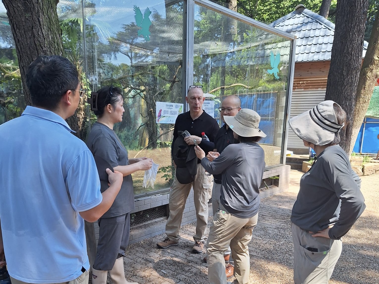 아침에 새 공원 내부의 비공개 구역을 관람했습니다. 앵무새 구역은 리모델링 중이어서 댜양한 앵무새를 관람할 수 없었지만 마카우, 이클렉터스 그리고 코카투등을 볼 수 있었고 또한 그레트 혼빌과 아름다운 홍따오기, 꿩, 올빼미등도 관람 할 수 있었습니다. 그날 오후에는 동물원 직원들과 몇몇 현지 사육사들을 위한 강의를 했습니다.